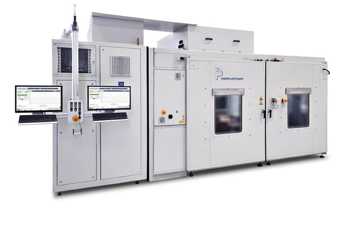 Eight parallel test stations equipped with integrated sensors (pressure,